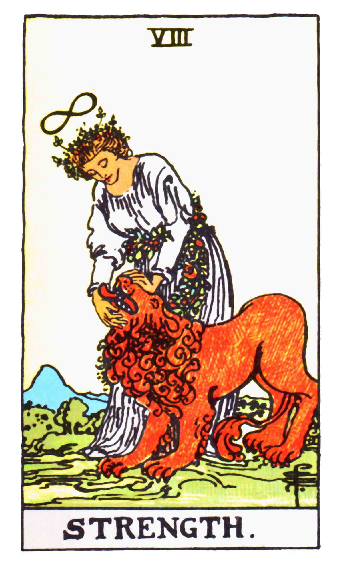 Click the header to read what A. E. Waite had to say about the Major Arcana Strength Tarot card symbolism and meaning in divination.