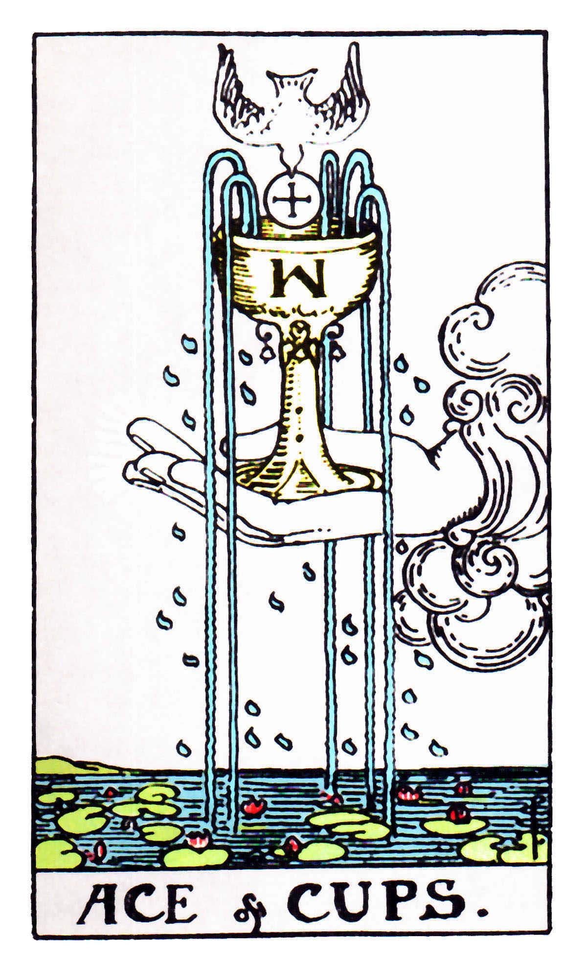 When a Cups card appears in a reading, its message is always about things of an emotional nature: Worries, delights, temptations, hopes, affections, disappointments, and so on. Events or situations that primarily affect the heart. Here are the 14 cards of the Cups suit and what they mean in Tarot card divination (click the card image to see a larger version of it): Ace of CupsThe Ace is an exclamation mark. Now, it's all about feelings. Solace. Bliss is around the corner.
