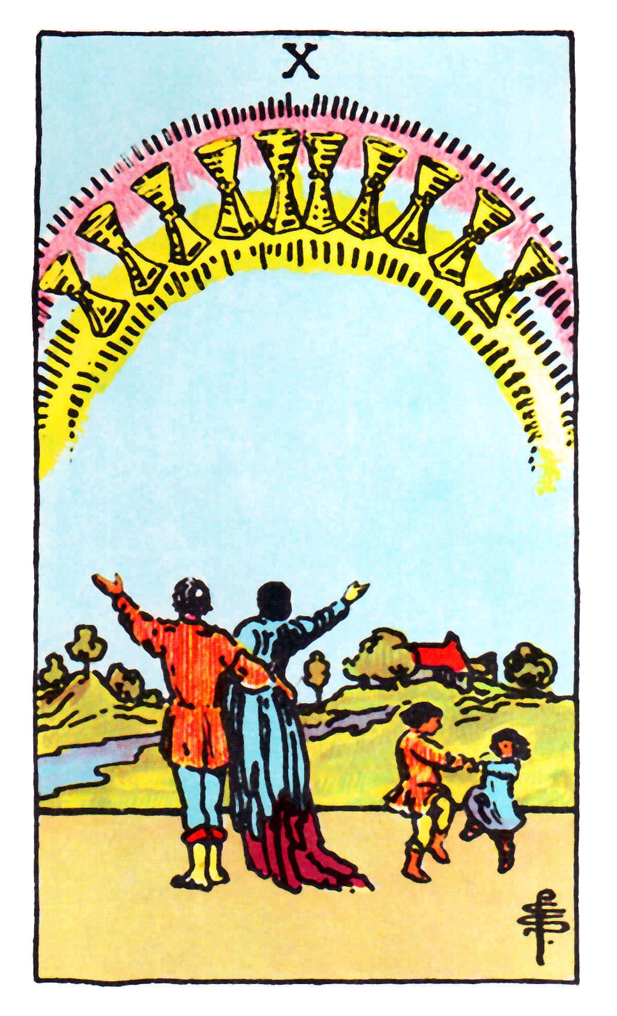 A. E. Waite's description of the cardTen of CupsThe bliss of accomplishment, when benefitting all involved. The reward of the worthy.